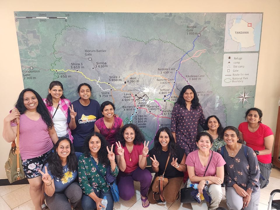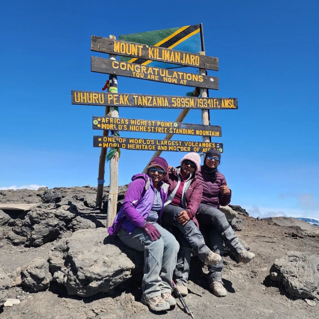 And then came the day of days, when in the darkness of the early hours, we began our ascent. Step by step, we encouraged one another, finding an inner power that burned brighter than the stars above. As dawn broke and we reached Stella Point, the first light of day brought with it a sense of awe. We had the privilege to see Mt. Meru at Dawn. Mt. Meru has a great significance in Indian Mythology and we had the pleasure of seeing the beautiful sight of the mountain at Sun Rise. An hour later, the summit: Uhuru Peak greeted us with the dawn. There, at the roof of Africa, our triumph was not just a personal feat but a shared victory that would forever bond us as sisters of the summit.